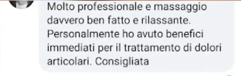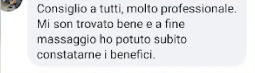 Massaggio fatto bene con passione, avevo bisogno di relax e sono uscito rinato, professionalità e gentilezza garantite.